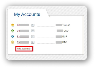 Go to your Perfect Money wallet and open a Bitcoin wallet. In the "My Accounts" click "Add Account".